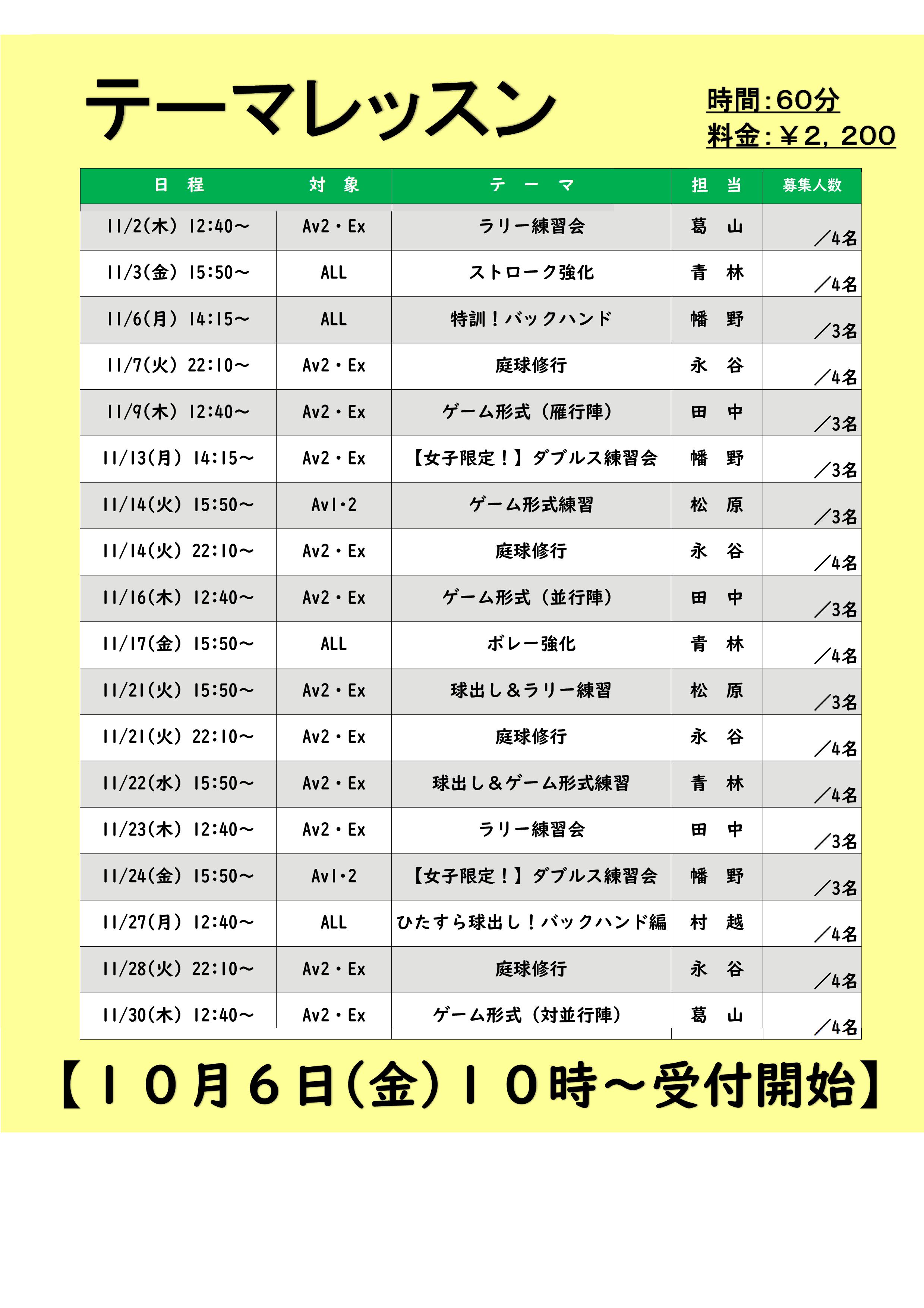 イベント&新着情報 1/25(日)わいわいダブルス 2025年11月21日 1/18(日)女子ダブルス練習会 2025年11月20日 1/18(日)男子ダブルス 2025年11月20日 1/11(日)ジュニア練習会 2025年11月20日 黒岩コーチのナイターシングルス練習会 2025年11月14日 2 / 6«12345...»最後 »