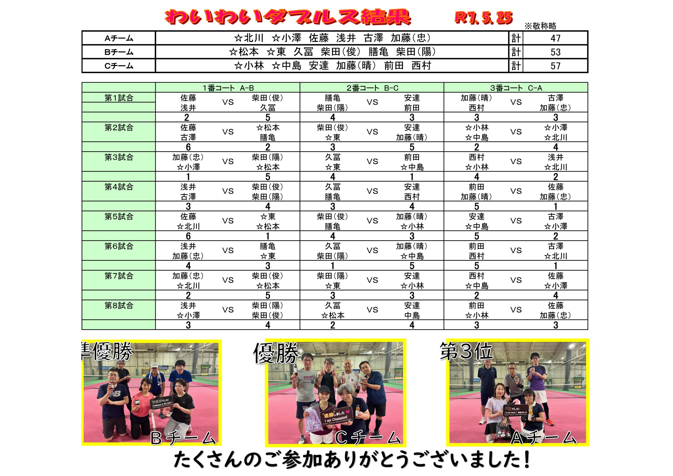 ◆5/25 わいわいダブルス結果