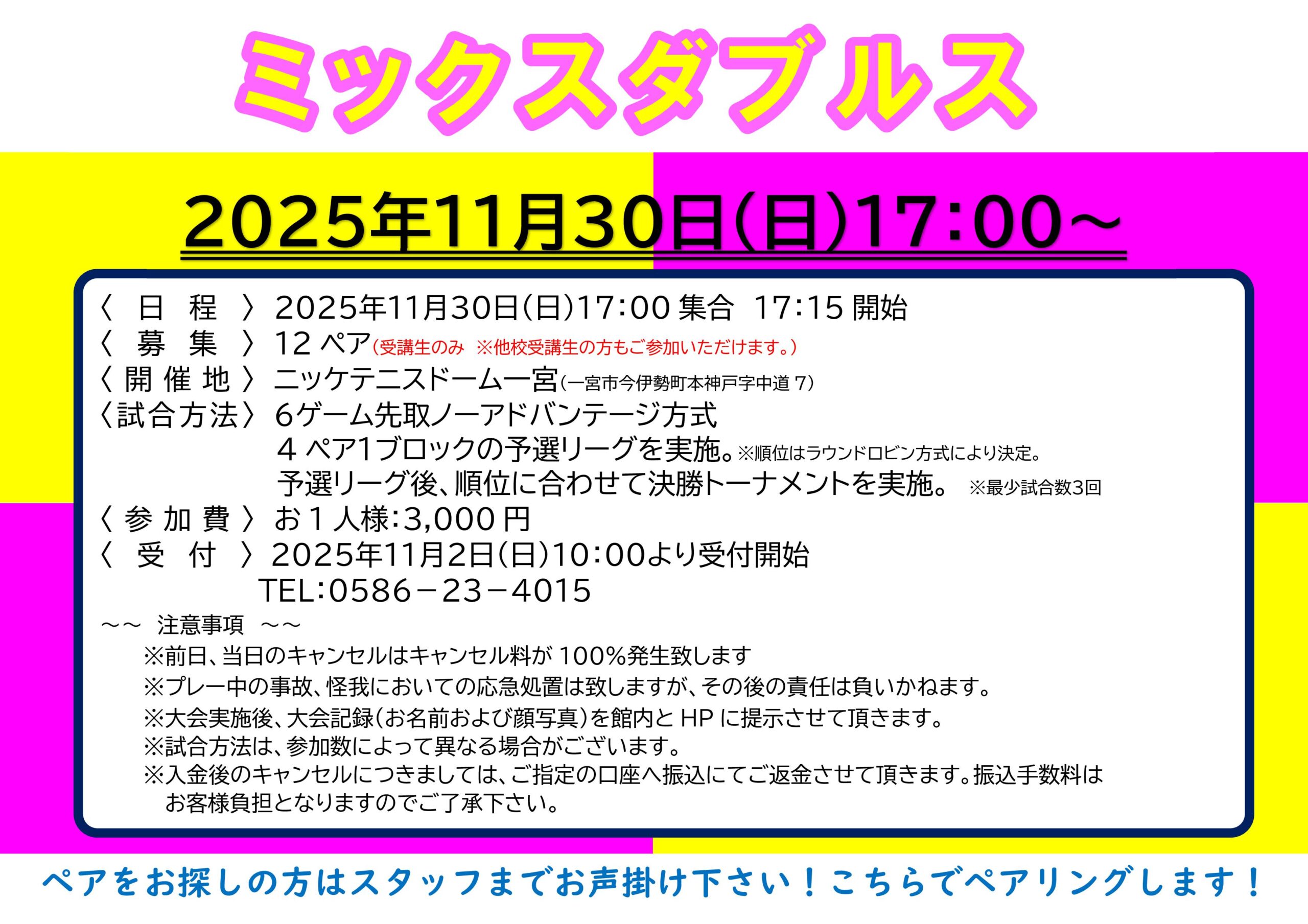 11/30(日)ミックスダブルス