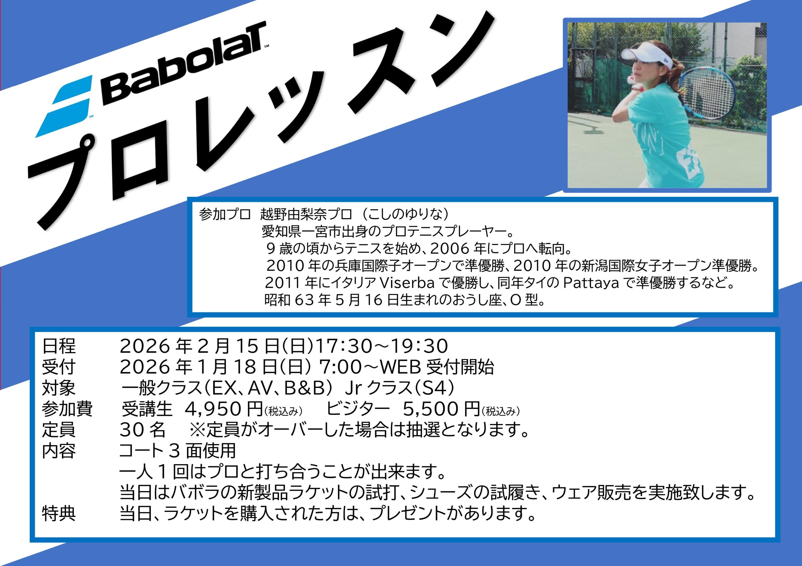 1月度イベント追加 浅田コーチのプライベートレッスン