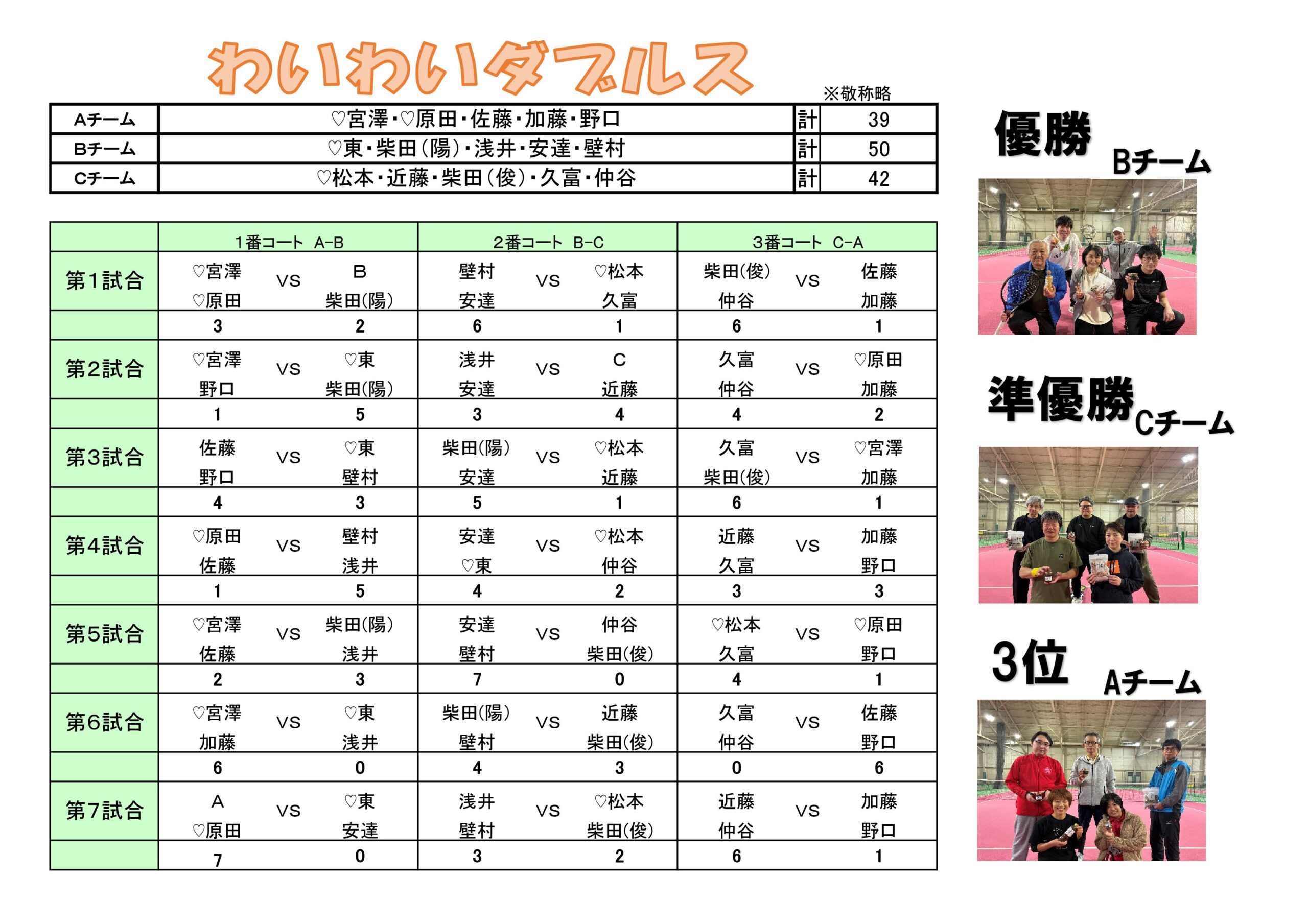 ◆1月25日(日)わいわいダブルス結果