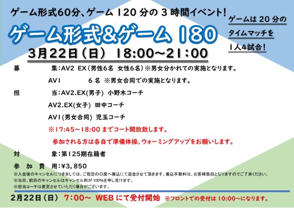 2月8日(日)FFF 担当コーチ変更のお知らせ