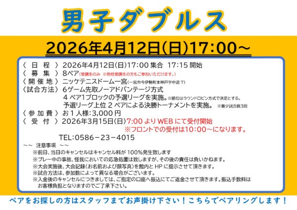 4月12日(日)男子ダブルス