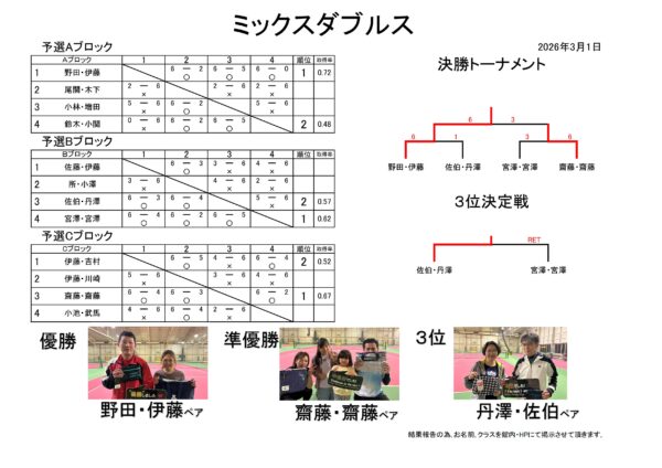 ◆3月1日(日)ミックスダブルス結果