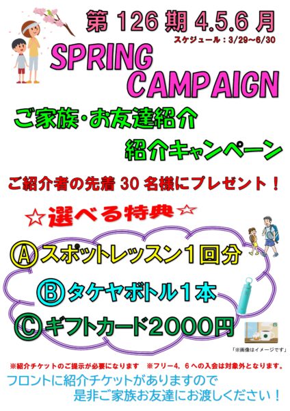 126期「456月」春のお友達・ご家族紹介キャンペーン実施🌸