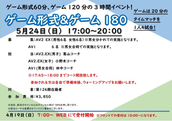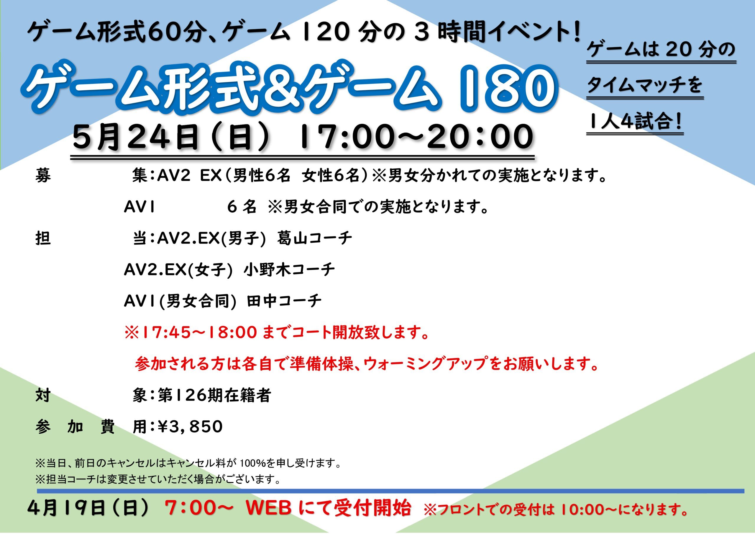 5月24日(日)ゲーム形式&ゲーム180
