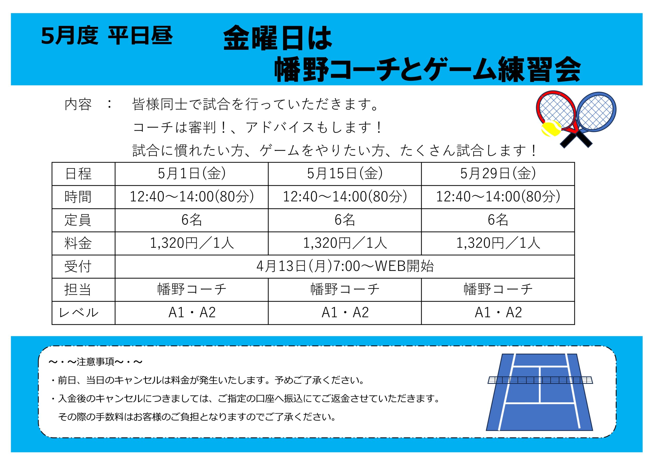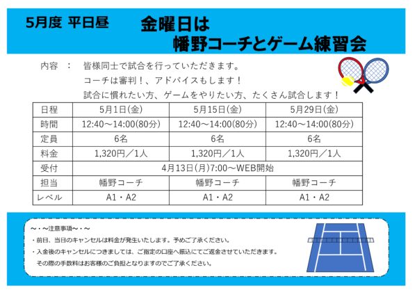 5月 平日昼 幡野コーチとゲーム練習会