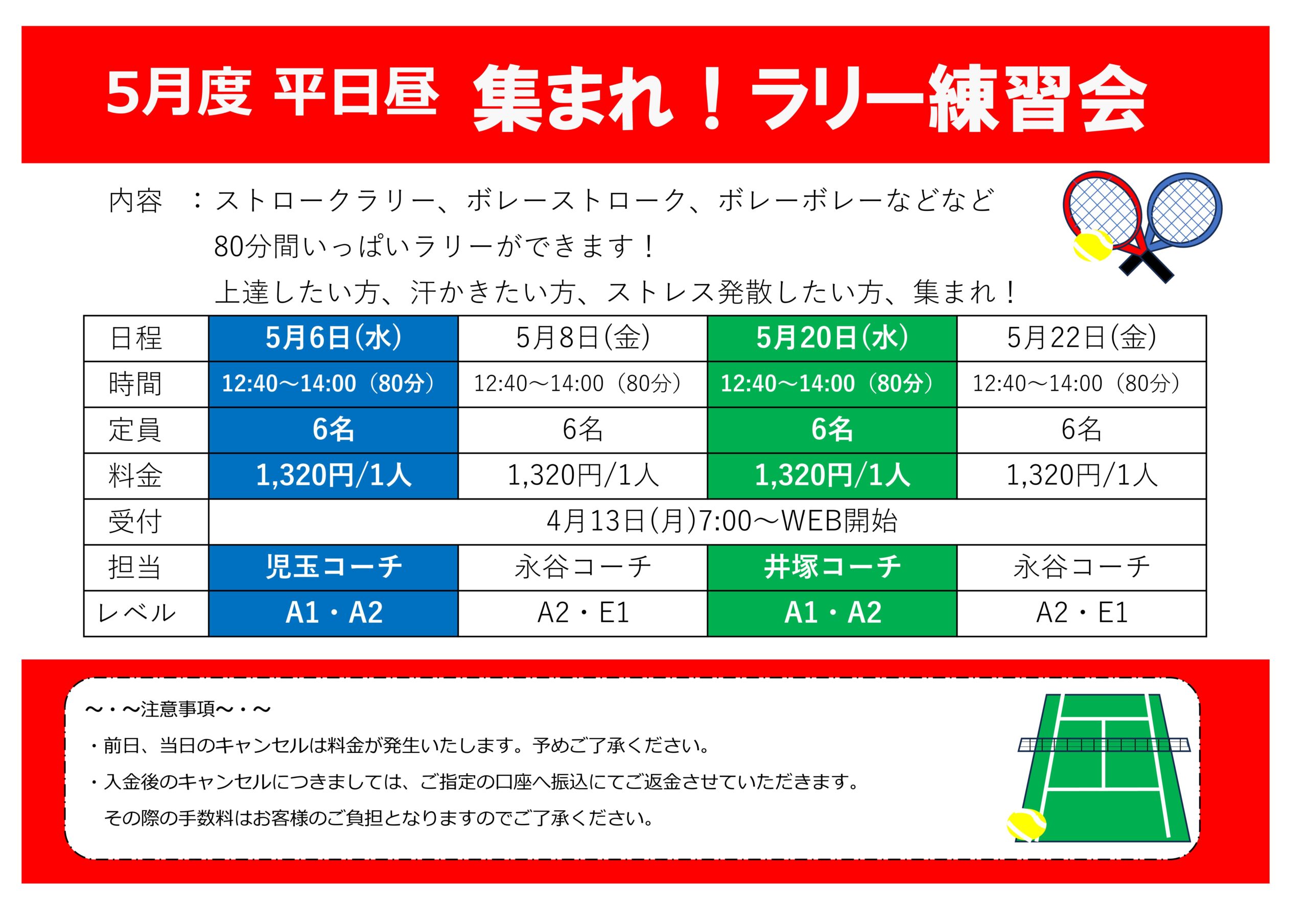 5月 平日昼 集まれ!ラリー練習会