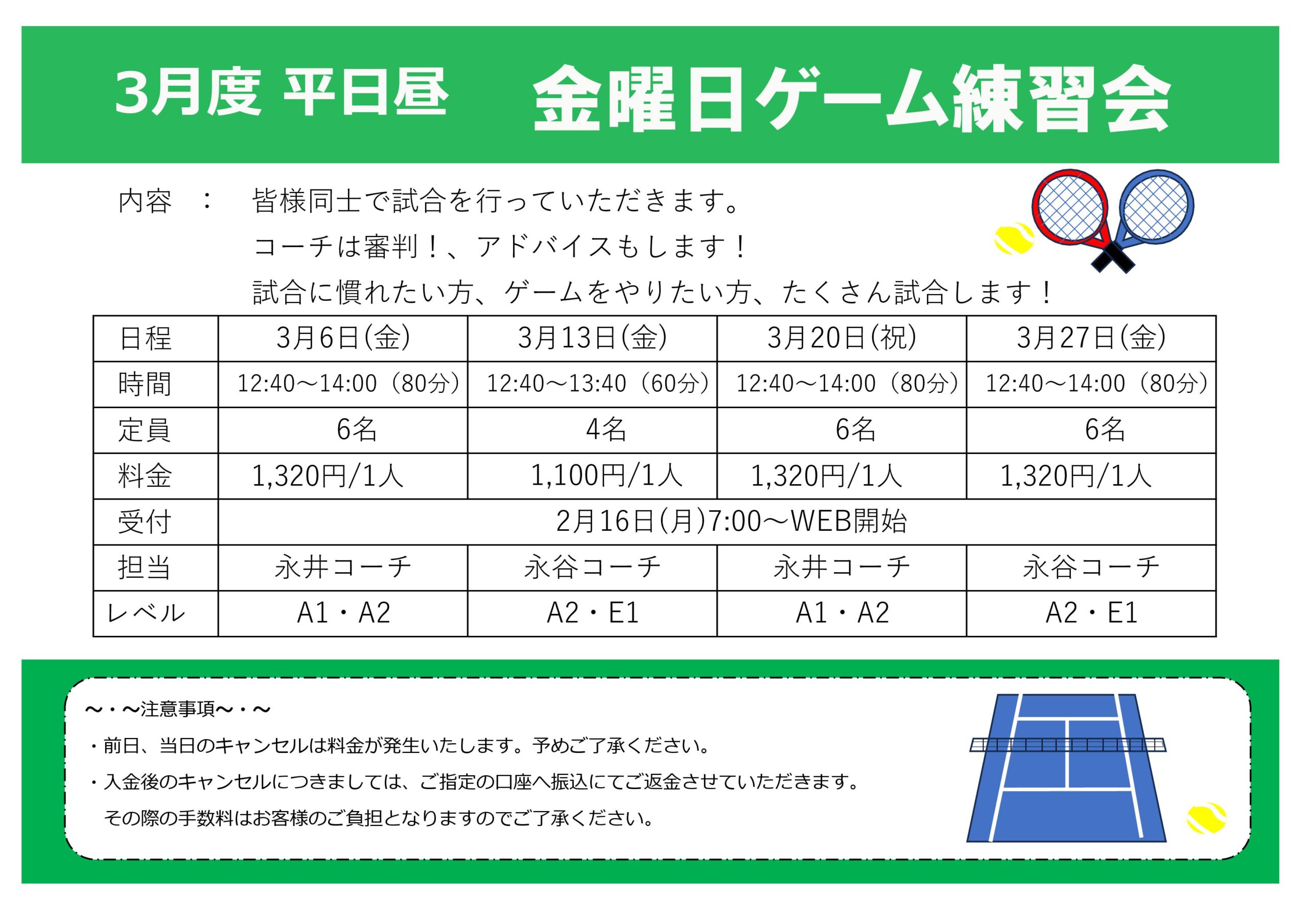 3月度平日昼 コーチ別テーマレッスン