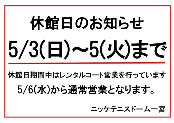 ゴールデンウィーク休館日のお知らせ🎏